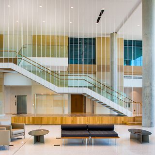 A necessity of a multi-use space, one that hosts a range of people for different purposes, is accessibility. Elements that can aid in making a space accessible for all include barrier-free access via ramps, elevators, and widened doorways, ADA compliant handrails, flexible configurations, and others that create a space that is easily reconfigured for the current purpose.