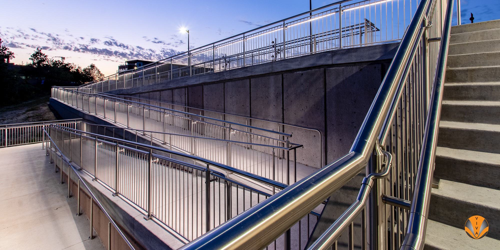 VIVA Railings offers code compliant handrails that adhere to International Building Code (IBC) standards as well as the Americans with Disabilities Act (ADA) standards. In both cases, the building code standards are focused on providing the safest and most accessible environment possible. Guidelines for the handrail’s profile, gripping surface, and returns, as well as height and laid requirements ensure that they’re accessible to as many people as possible.