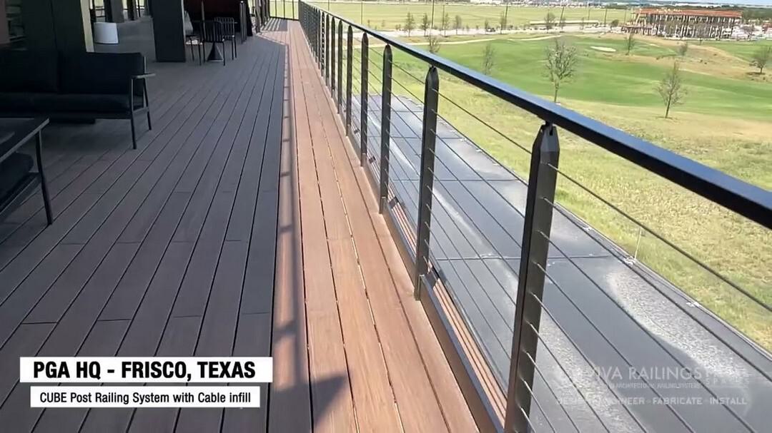 Safety and security is especially important on elevated surfaces. On this elevated walking surface, our CUBE Cable Metal Railing System provides ADA compliance without obstructing the view of the surrounding trees. This design also incorporates our iRAIL LED Linear Illuminated Railings for added visibility and safety at night.