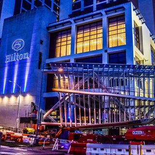 One of our latest projects, the Hilton Austin Convention Center Bridge features customized railing systems surrounded by a net barrier. Before the bridge even began fabrication, Hilton Austin revamped their interior with a new lobby, meeting areas, and two new restaurants. Hilton also created a 1, 800 square foot outdoor terrace on the 6th floor to house one end of the bridge. The connecting end sits on the 4th floor of the Austin Convention Center across the street, which makes a nearly 11-foot difference between point A and point B.