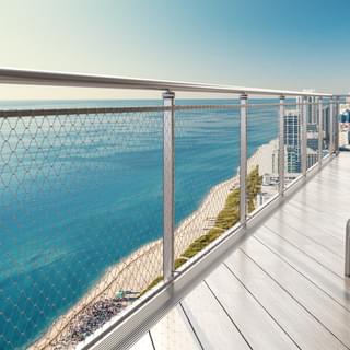 Our stainless steel CableNetinfill panel railing solution combines durability and minimalism to create an optimal railing solution. Stainless steel CableNet is resistant to corrosion, making it ideal for coastal projects. The CableNet infill panel allows for unobstructed views while still providing a secure barrier for safety, and its minimal design complements modern aesthetics. Additionally, it is easy to install and maintain and can be used with most of our POST Railing Systems.